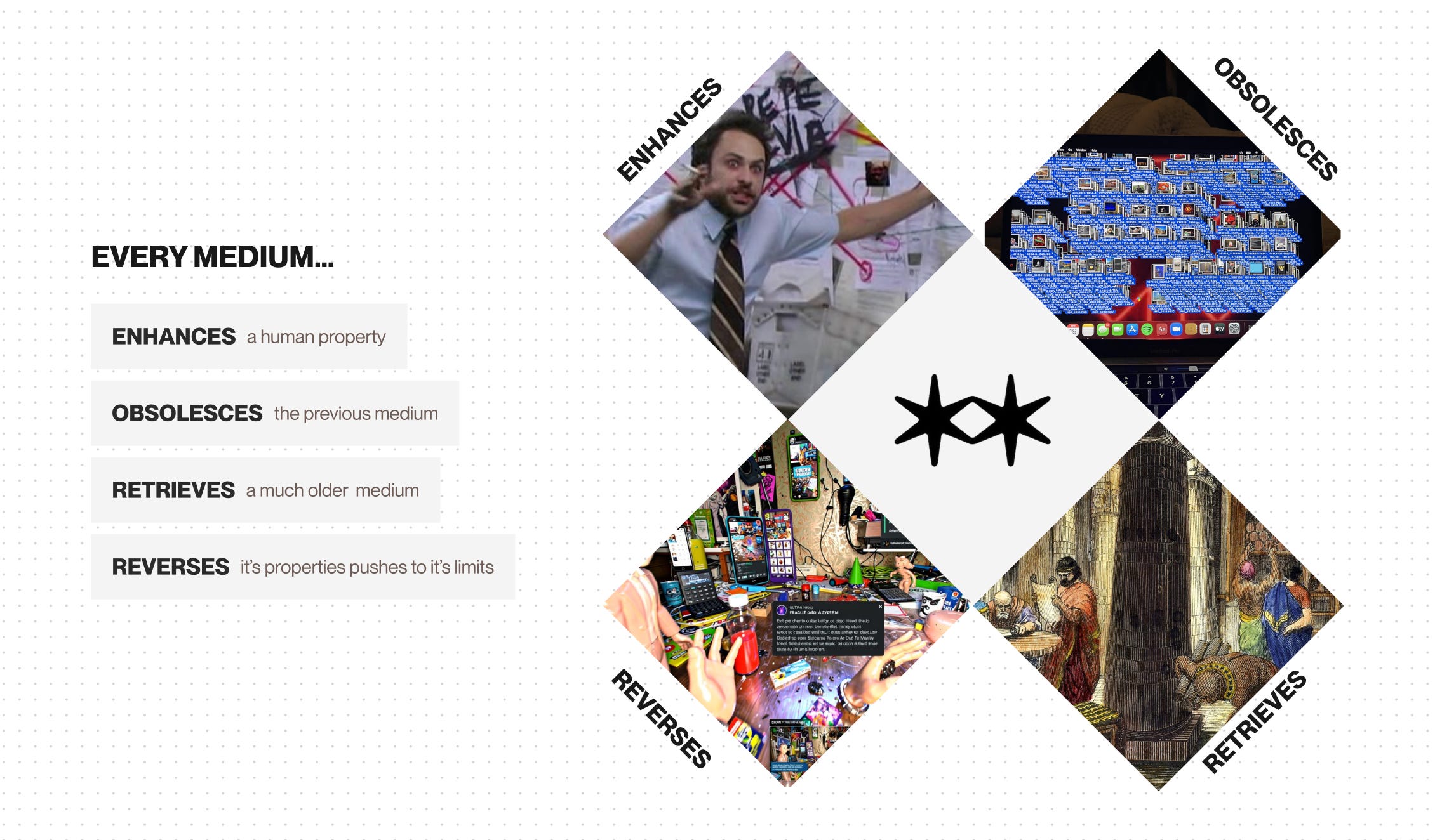 McLuhan’s media tetrad theory nods to this concept, but what if we push this thinking with scales of time? What does it look like to create software with Shelf-Life in mind, combining our understanding of the half-life (rate of decay in use) with the impending expiration date of the underpinning idea itself within a moment’s cultural context? What decisions create something that lasts in use, in memory, and in culture — on purpose? How can we prove the worth of digital experiences by thinking less about total users and more about whether software has been designed to endure?