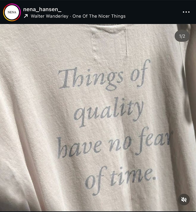 I recently came across a screen-printed shirt that read “Things of Quality Have No Fear of Time.” In an era of ghosting, pivoting, light commitment, anxious attachment styles, and planned obsolescence, that phrase felt almost defiant. Or maybe just honest about what we’ve lost. The idea that quality might be expressed plainly, with honesty and confidence, feels foreign to me in the trust-negative era we find ourselves in.