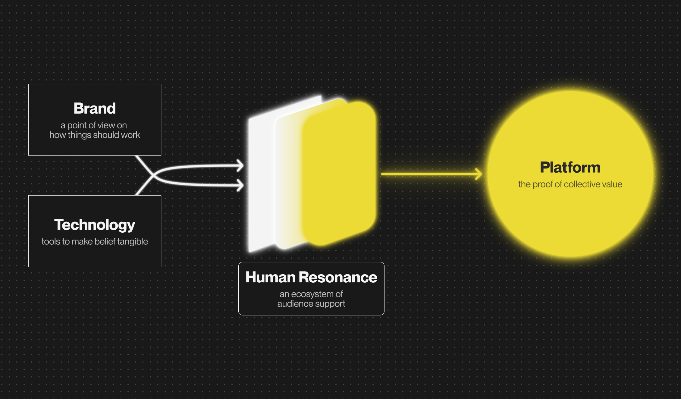 We tend to think of platforms as pieces of technology: infrastructure, APIs, network effects, etc. But the platforms are actually brands augmented by technology. The brand is the belief system, the shared point of view about how something should work. The technology is what lets people who share that belief act on it together and prove it out. Are.na isn’t a platform because it has channels and blocks. It’s a platform because it presents a belief (using product design) about research being calm and intentional, and the technology lets people who are committed to that belief learn together. Shopify is a platform because it represents a belief that commerce should be accessible and merchant-first, not because it has checkout APIs and an app ecosystem. The technology enables thousands of merchants to prove that belief every single day.